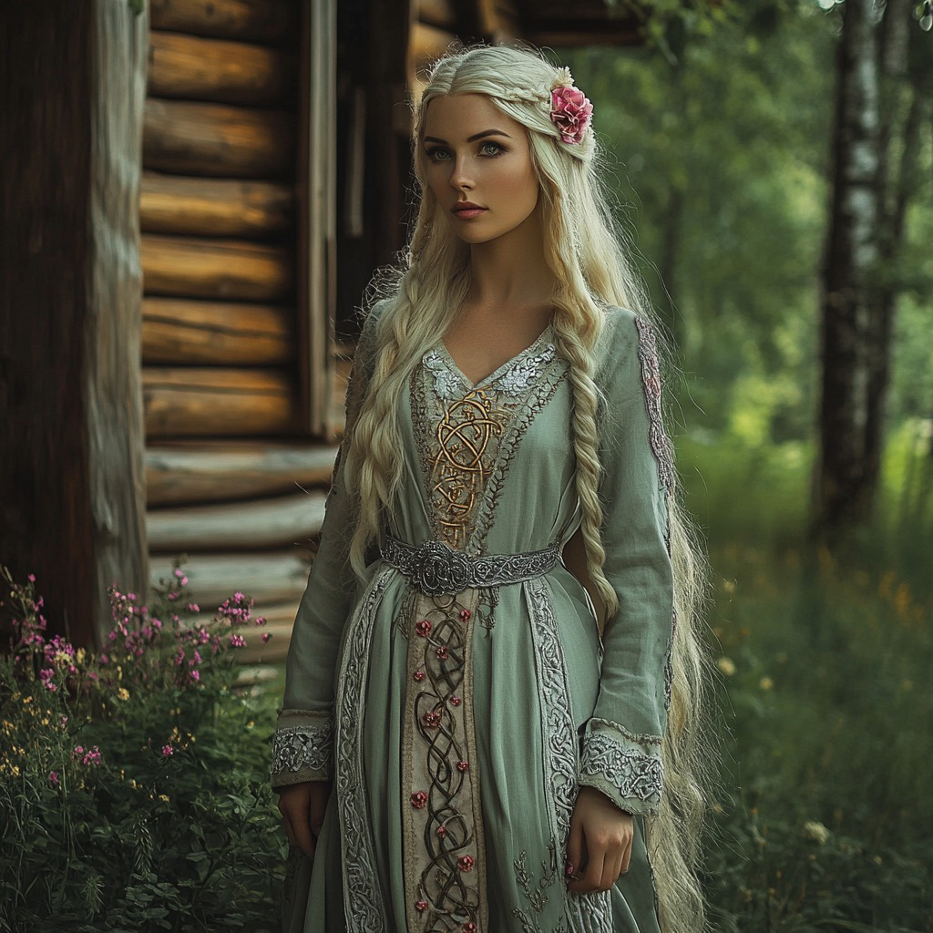 Vintage Rose Celtic Knot Embroidery Art Linen Blend Shirt
