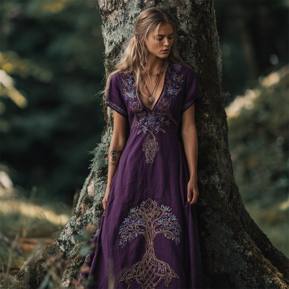 Women's Vintage Viking Tree Of Life Art Cotton And Linen Dress