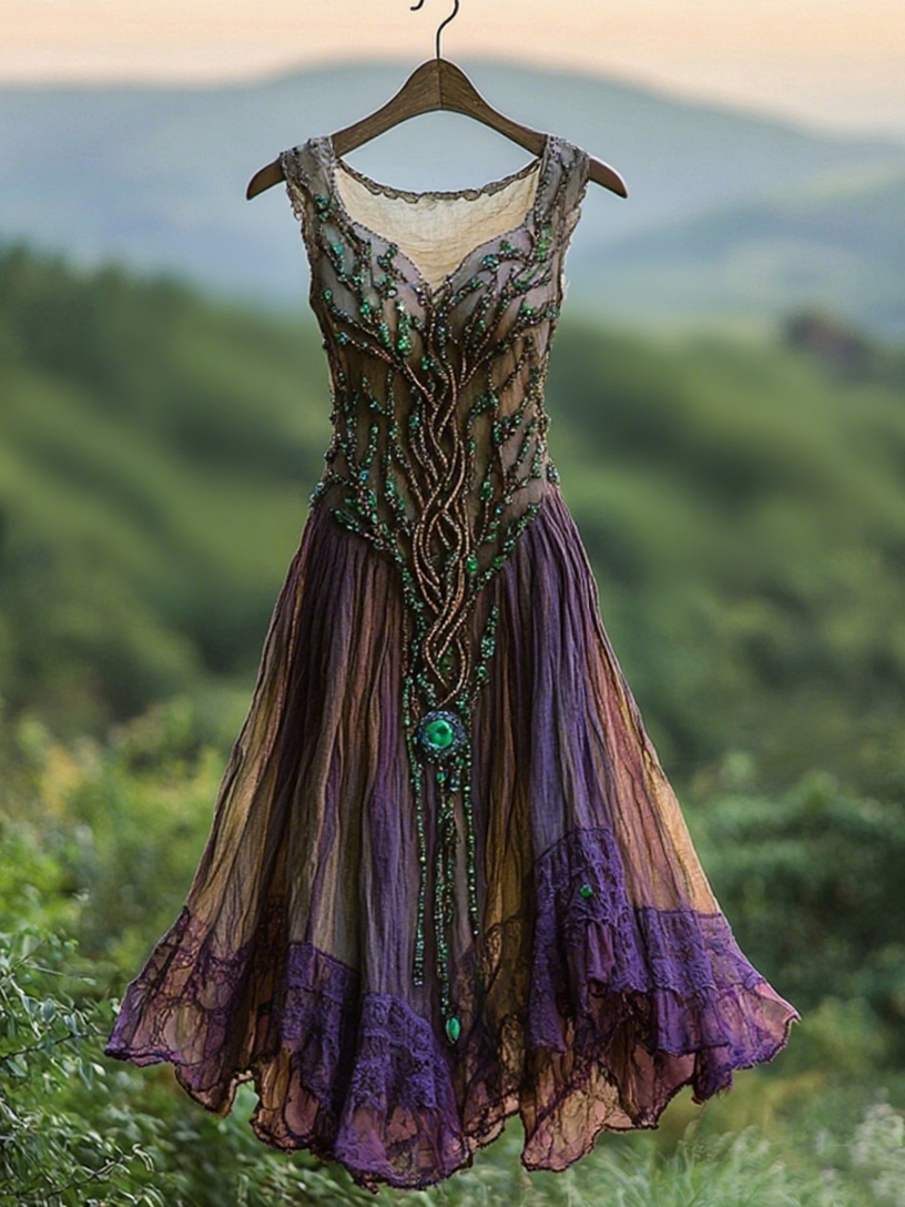 Vintage Celtic Mythology Gradient Lace Linen Tank Dress