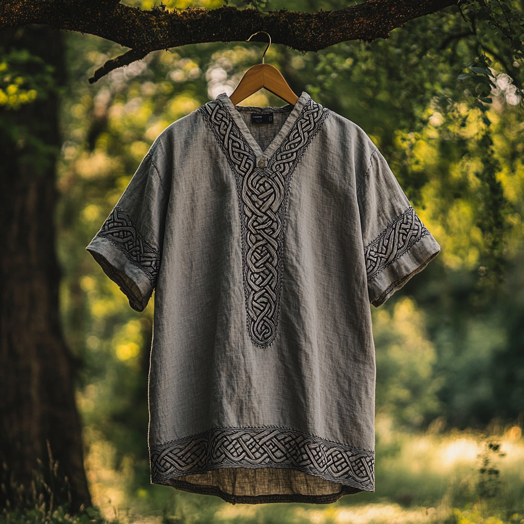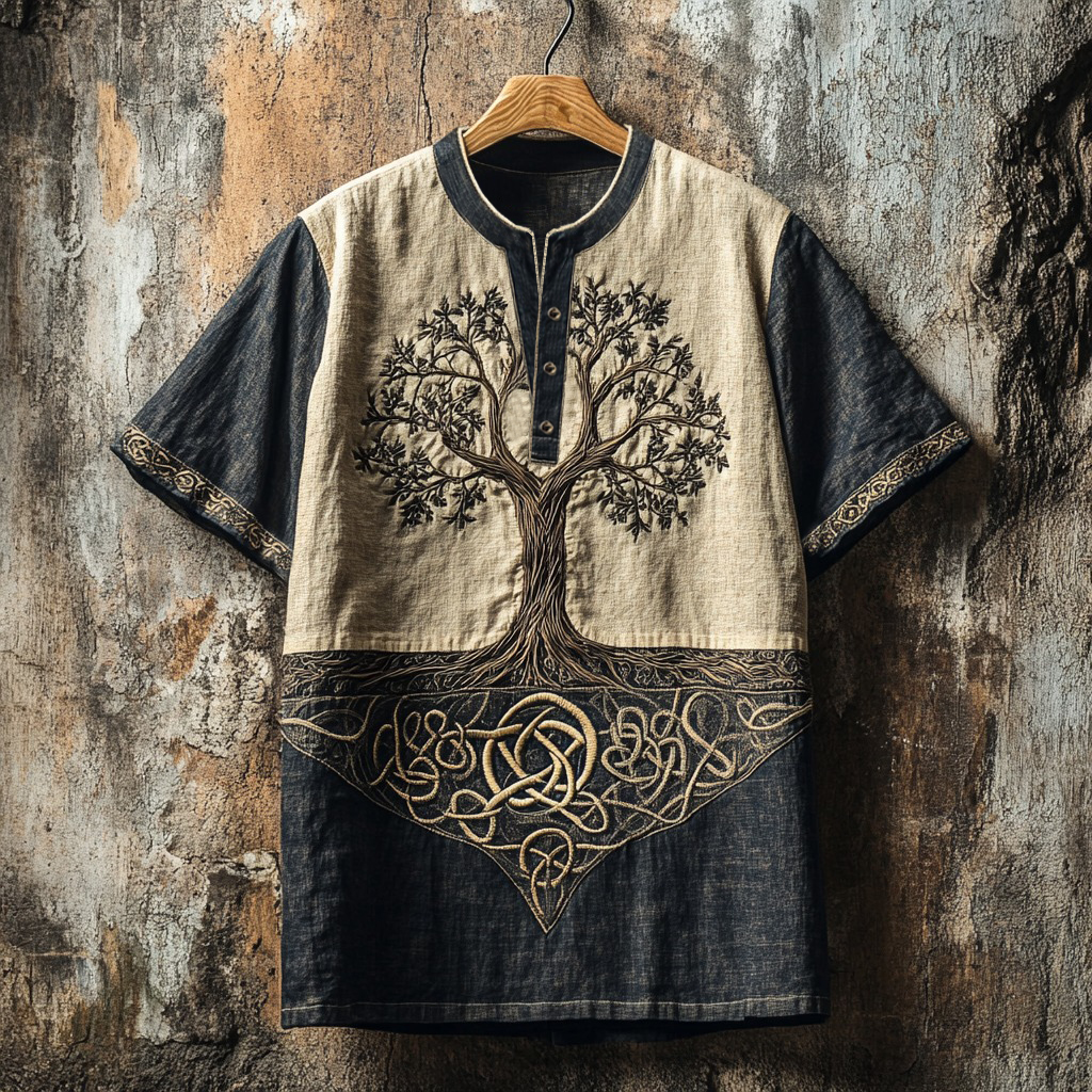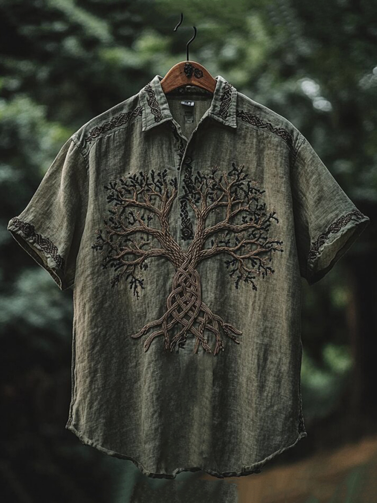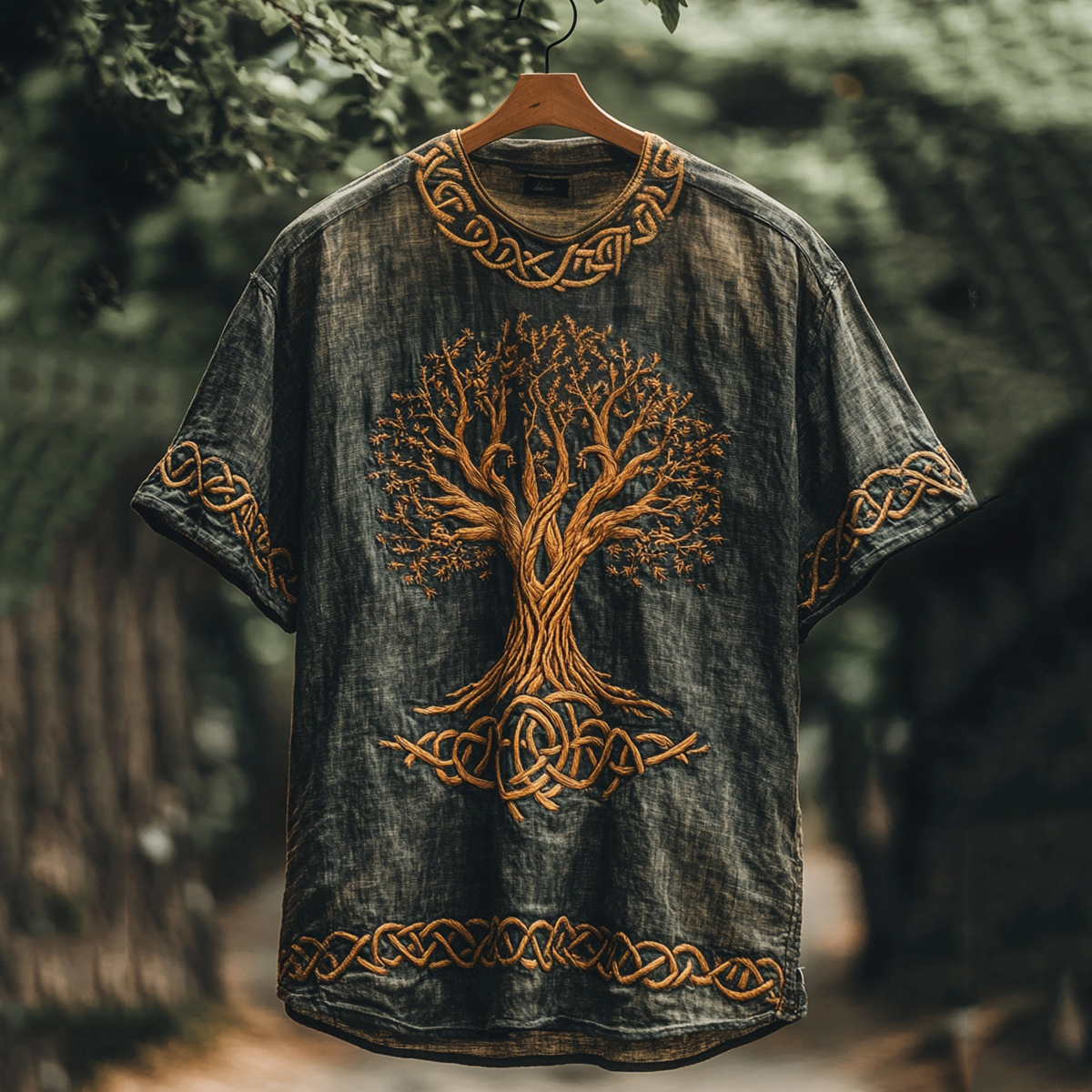 Men's Celtic Mythical Embroidery Tree Of Life Shirt
