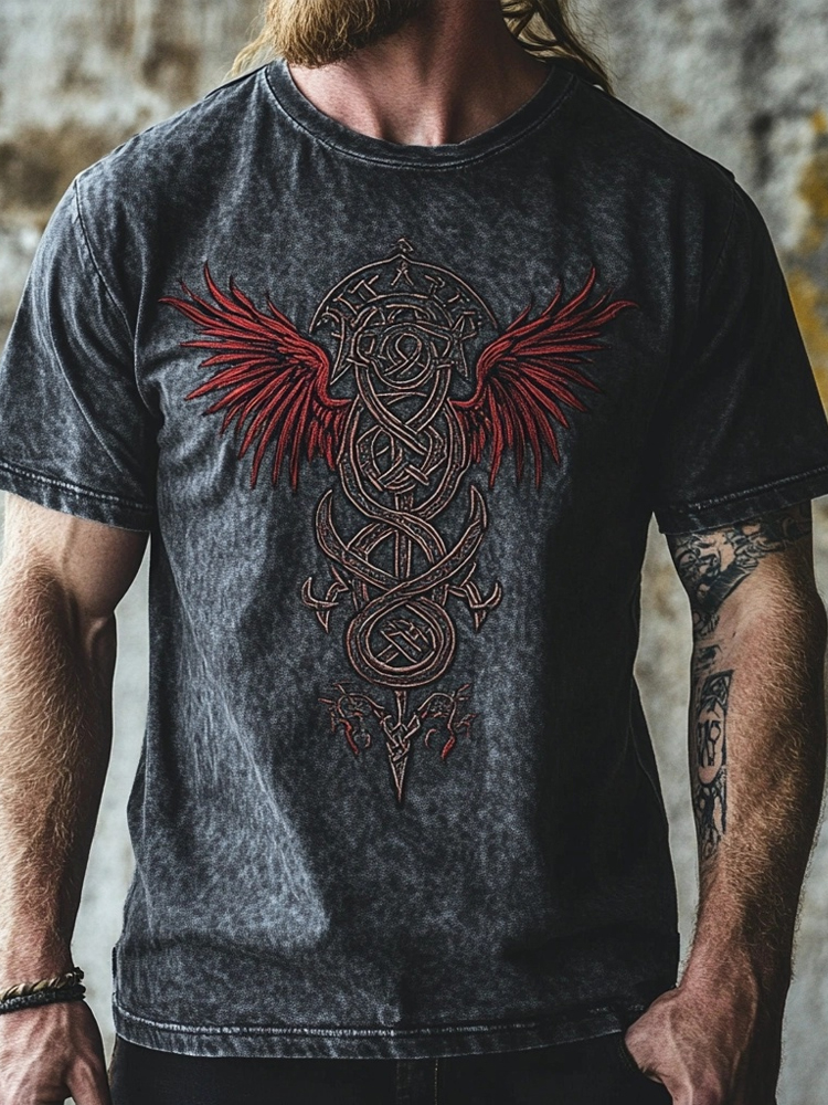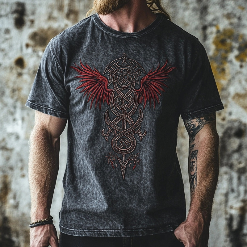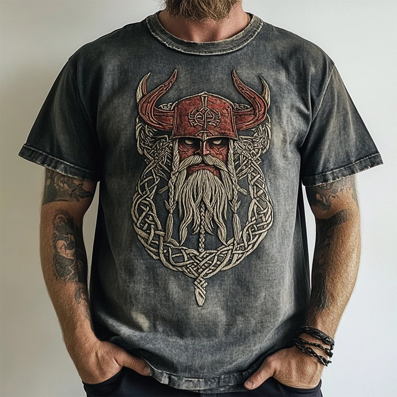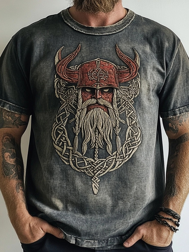 Men's Viking Inspired Embroidered Vintage Washed T Shirt