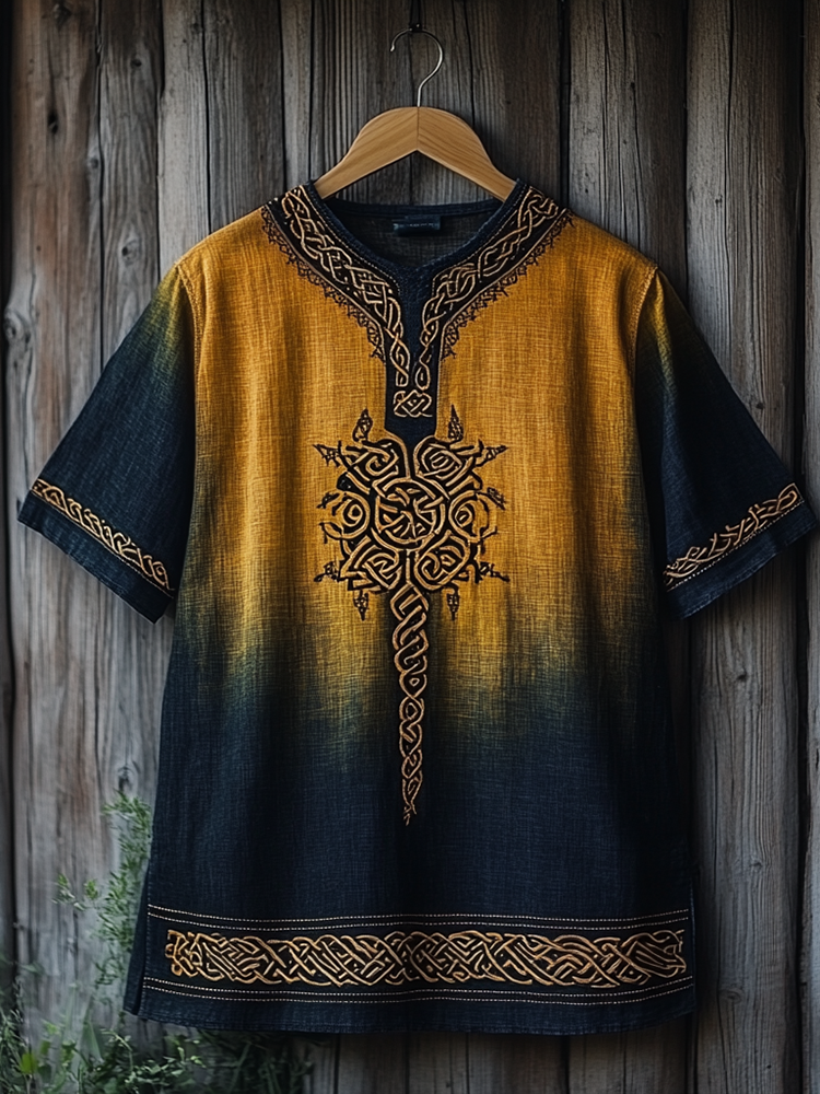 Men's Viking Celtic Knot Art Gradient Linen V-neck T Shirt