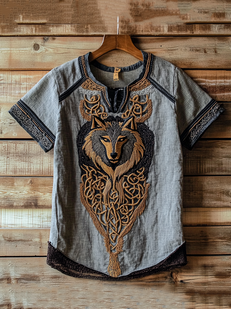 Mens Vintage Viking Wolf Celtic Linen Shirt
