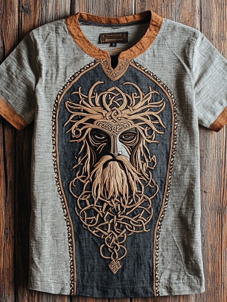 Men's Viking Celtic Knotwork Embroidered Vintage Washed T Shirt