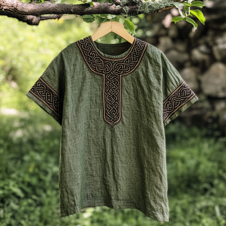 Men's Viking Celtic Knot Braided Cotton Linen T-shirt