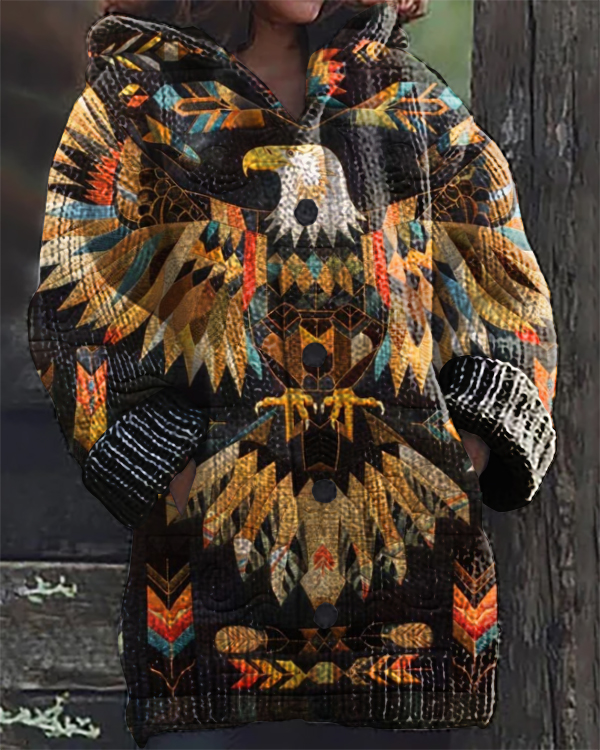 Vintage Native Eagle Print Casual Hooded Cardigan