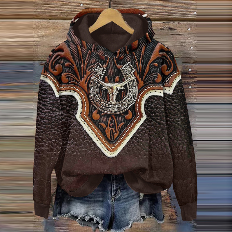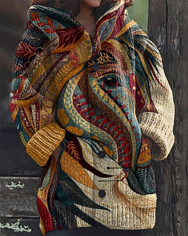 Women'S Retro Geometric Totem Pattern Hooded Sweater