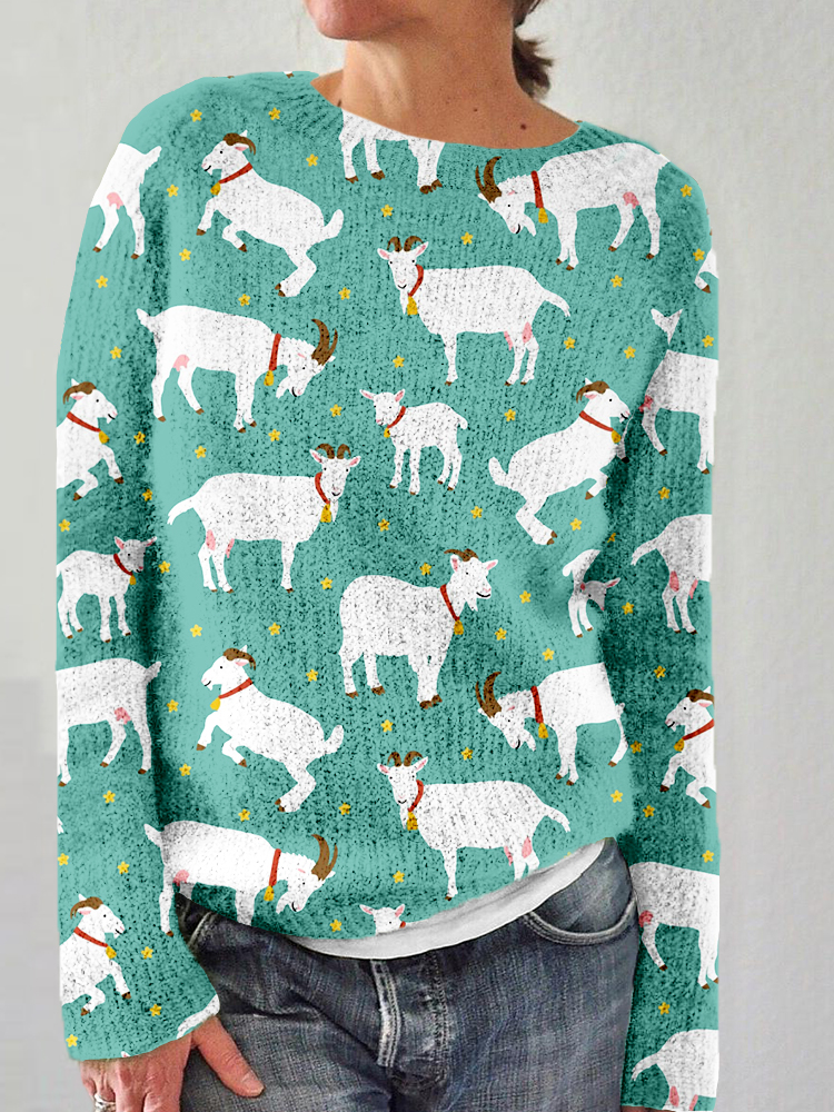 Happy Goats & Flowers Graphic Cozy Knit Sweater