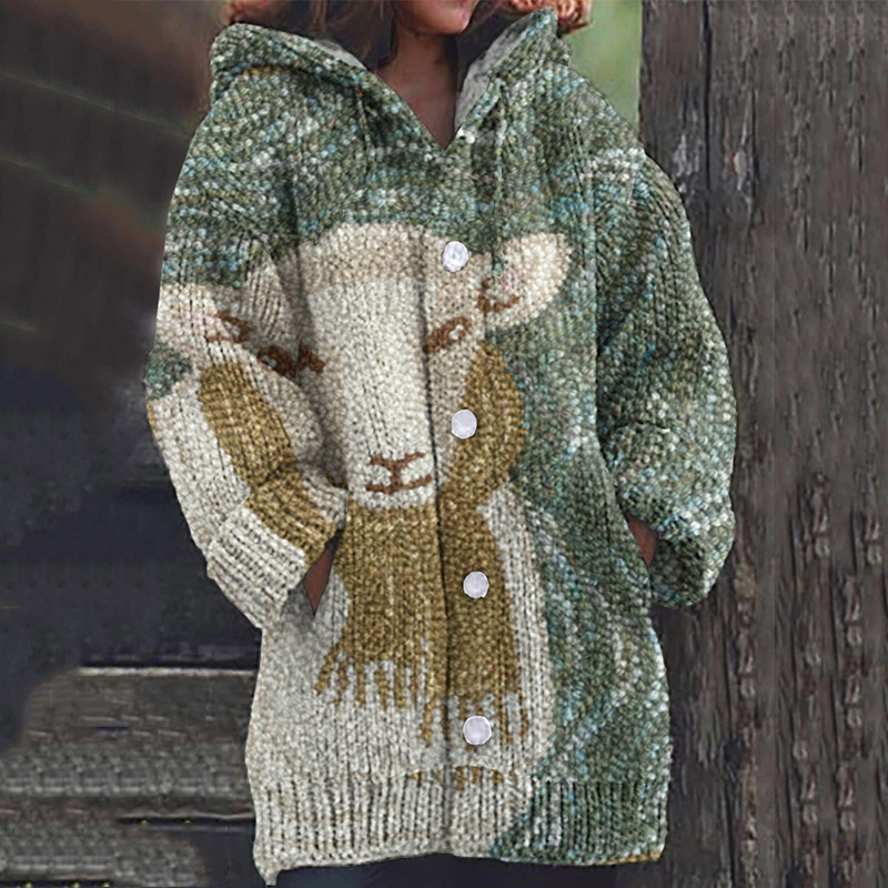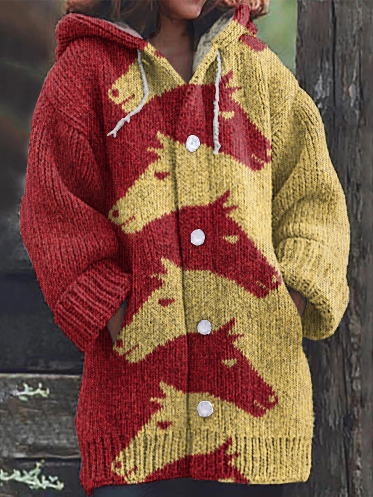Cowhide Pattern Cozy Knit Hooded Cardigan