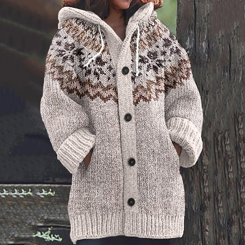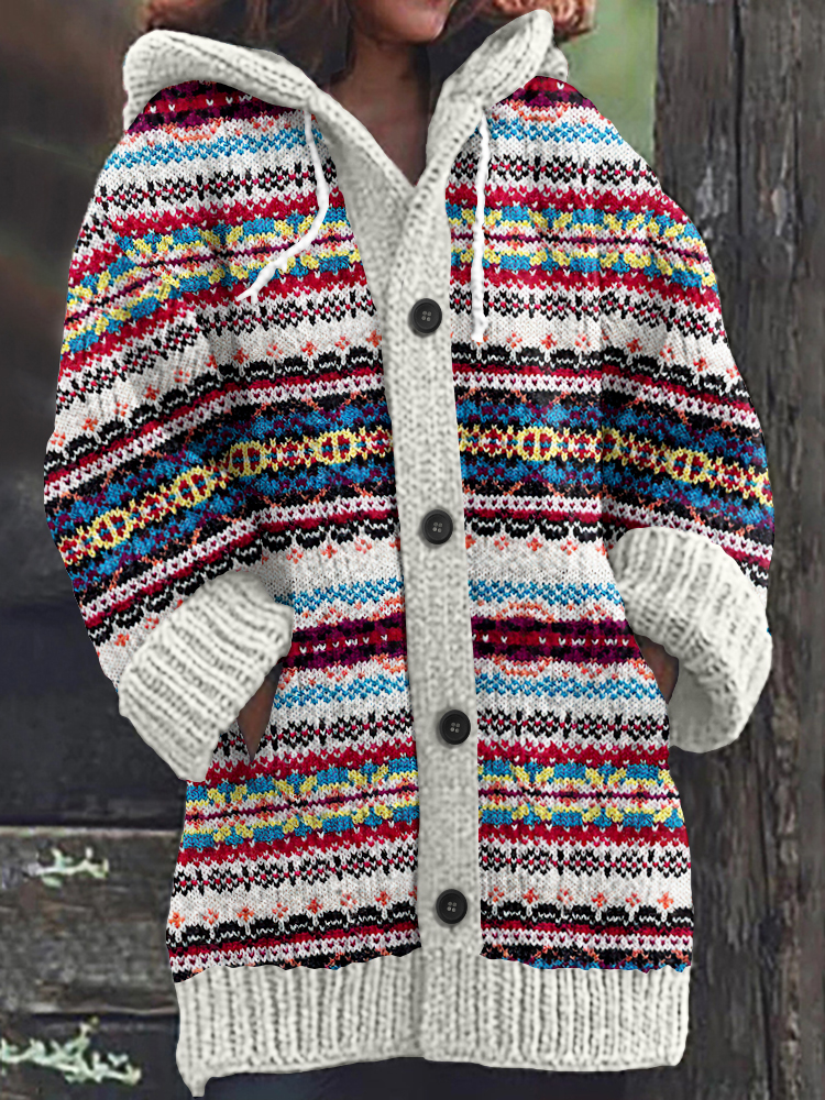 Vintage Fairman Island Pattern Contrast Hooded Sweater Cardigan