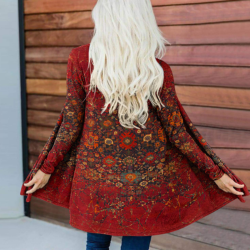 Fairman Island Print Vintage Hooded Sweater Cardigan