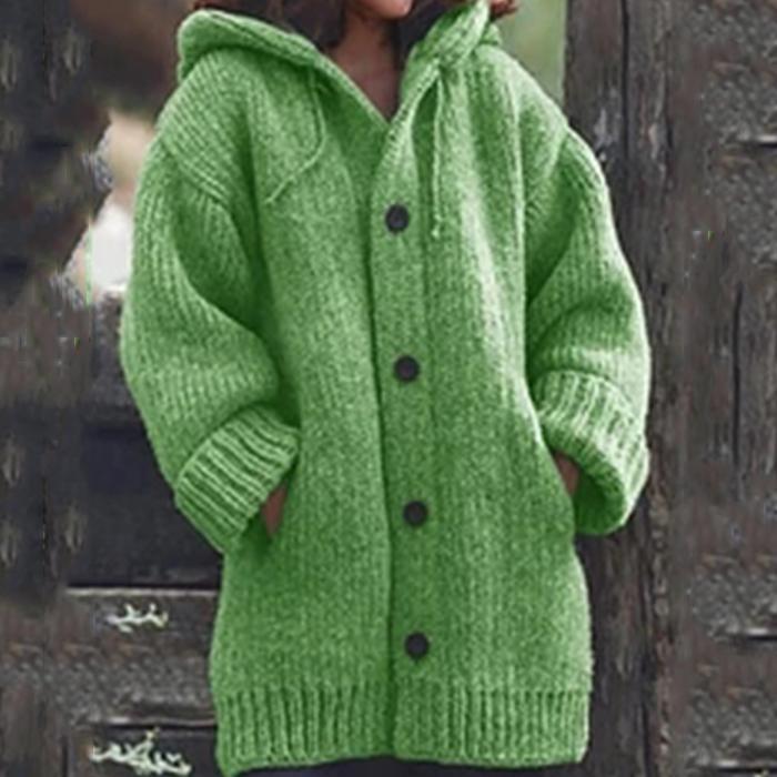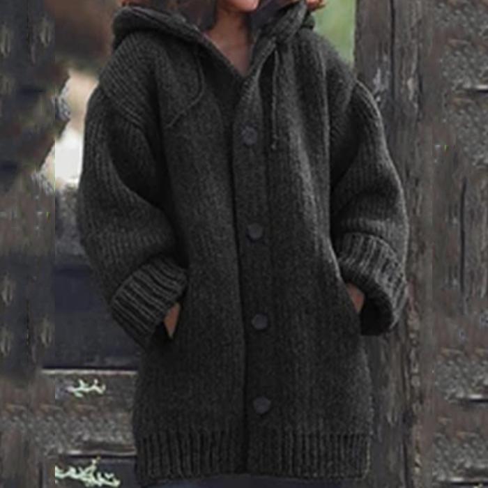 Hooded Sweater Solid Color Loose Mid-length Sweater