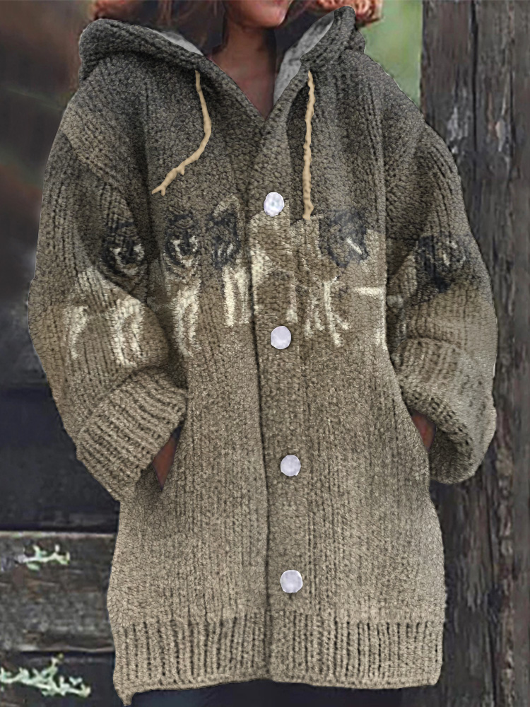 Vintage Outdoor Pack Of Wolves Print Women'S Cardigan Sweater