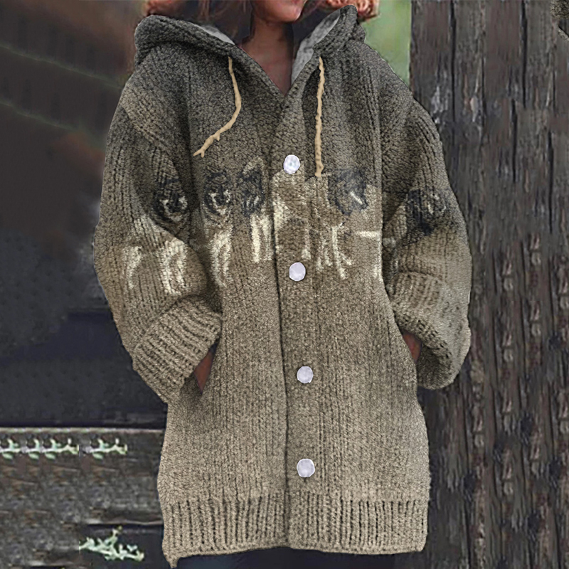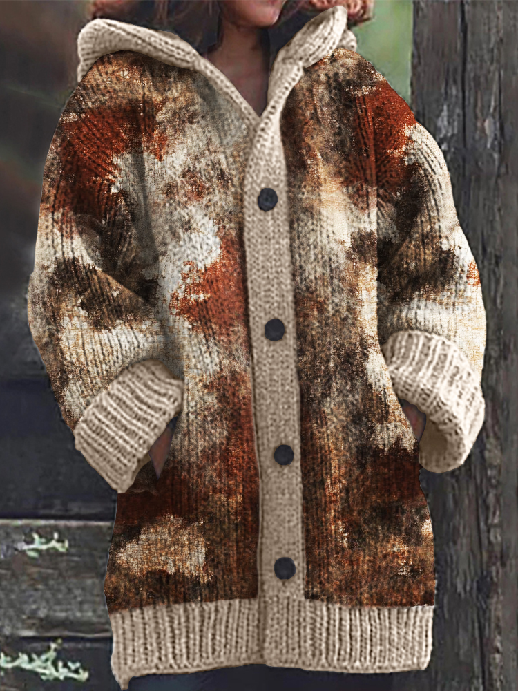Vintage Faded Leather Art Cozy Hooded Cardigan