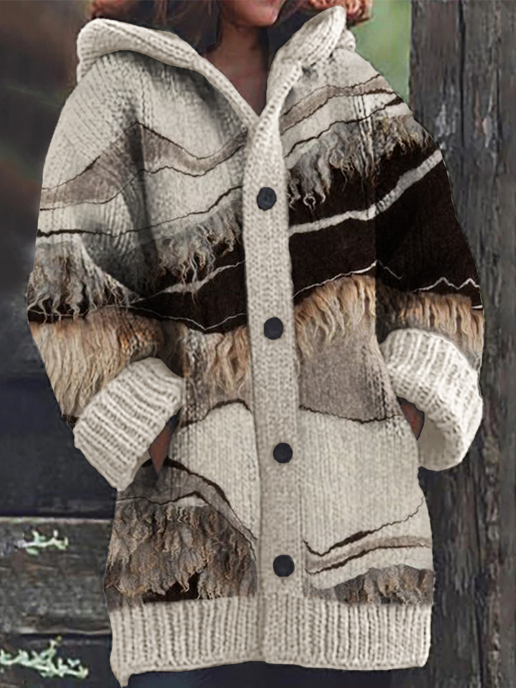 Mountains Landscape Wool Textile Cozy Hooded Cardigan