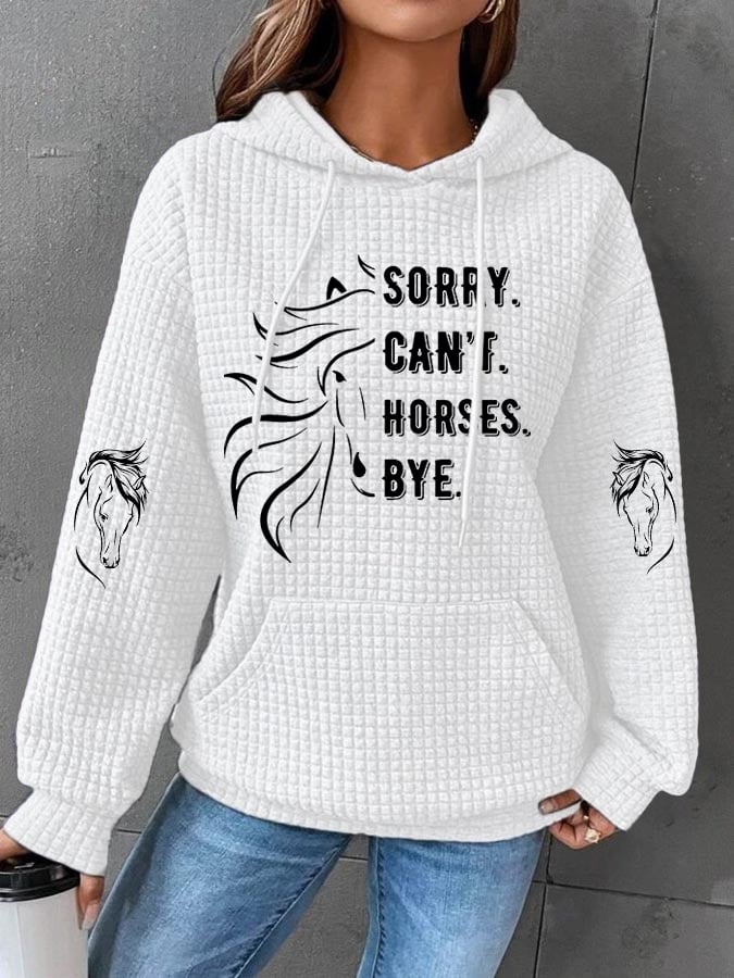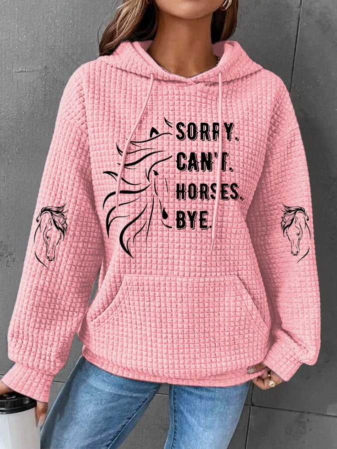 Women's Sorry Can't Horses Bye Print Waffle Hooded Sweatshirt