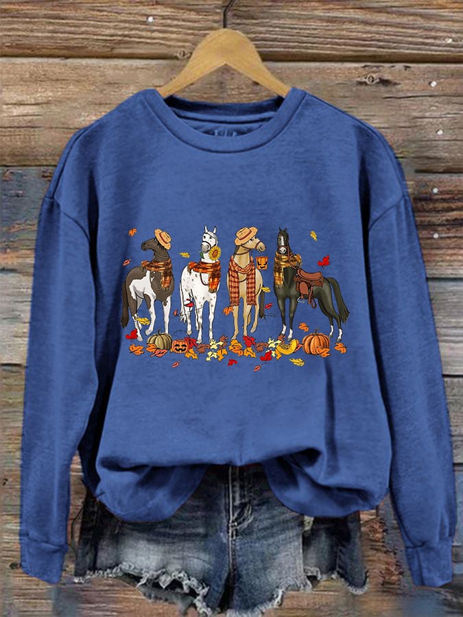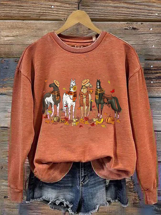 Women's Autumn Horse Print Crewneck Sweatshirt