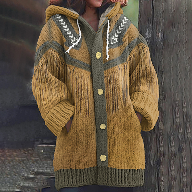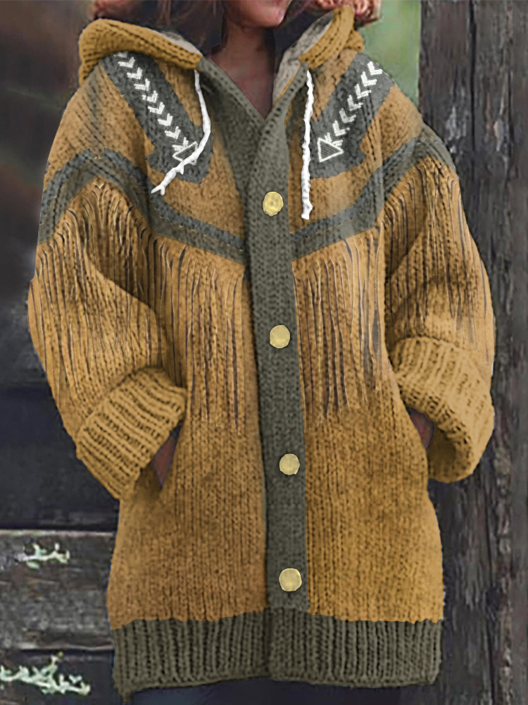 Women'S Native American Pattern Hooded Cardigan Sweater