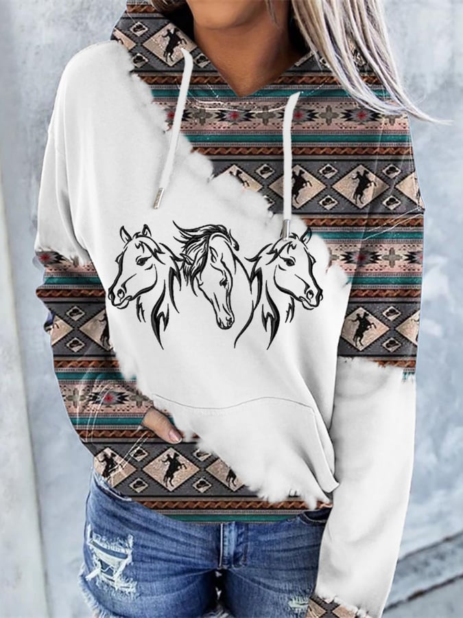 Women'S Retro Geometric Totem Pattern Hooded Sweater