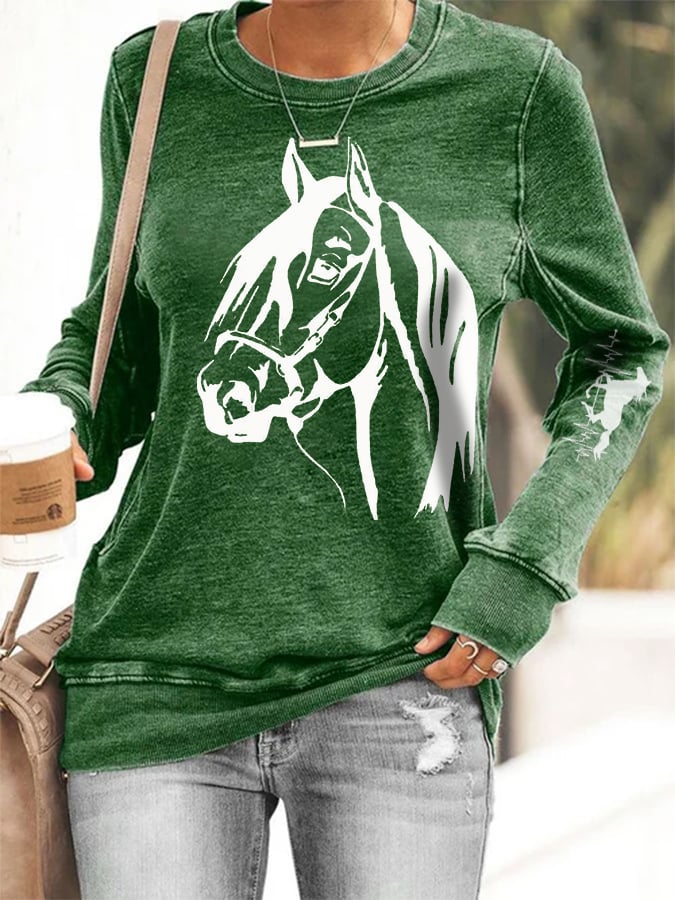 Women's Art Colorful Horses Print Casual Sweatshirt