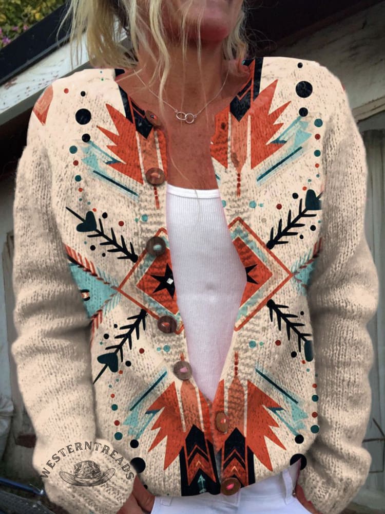 Aztec Print Buttoned Cardigan Sweater