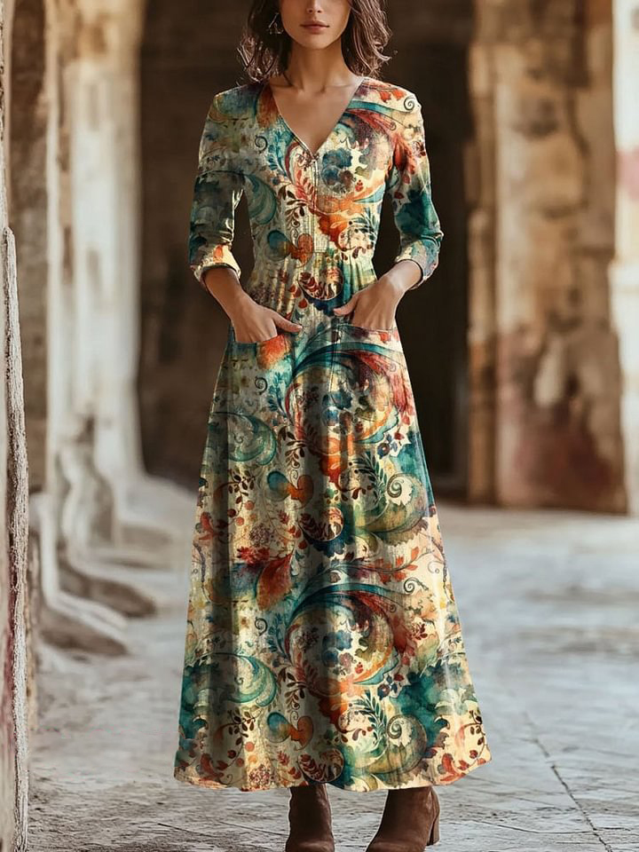Women's Vintage Paisleys Art Print Pocket Cotton Dress