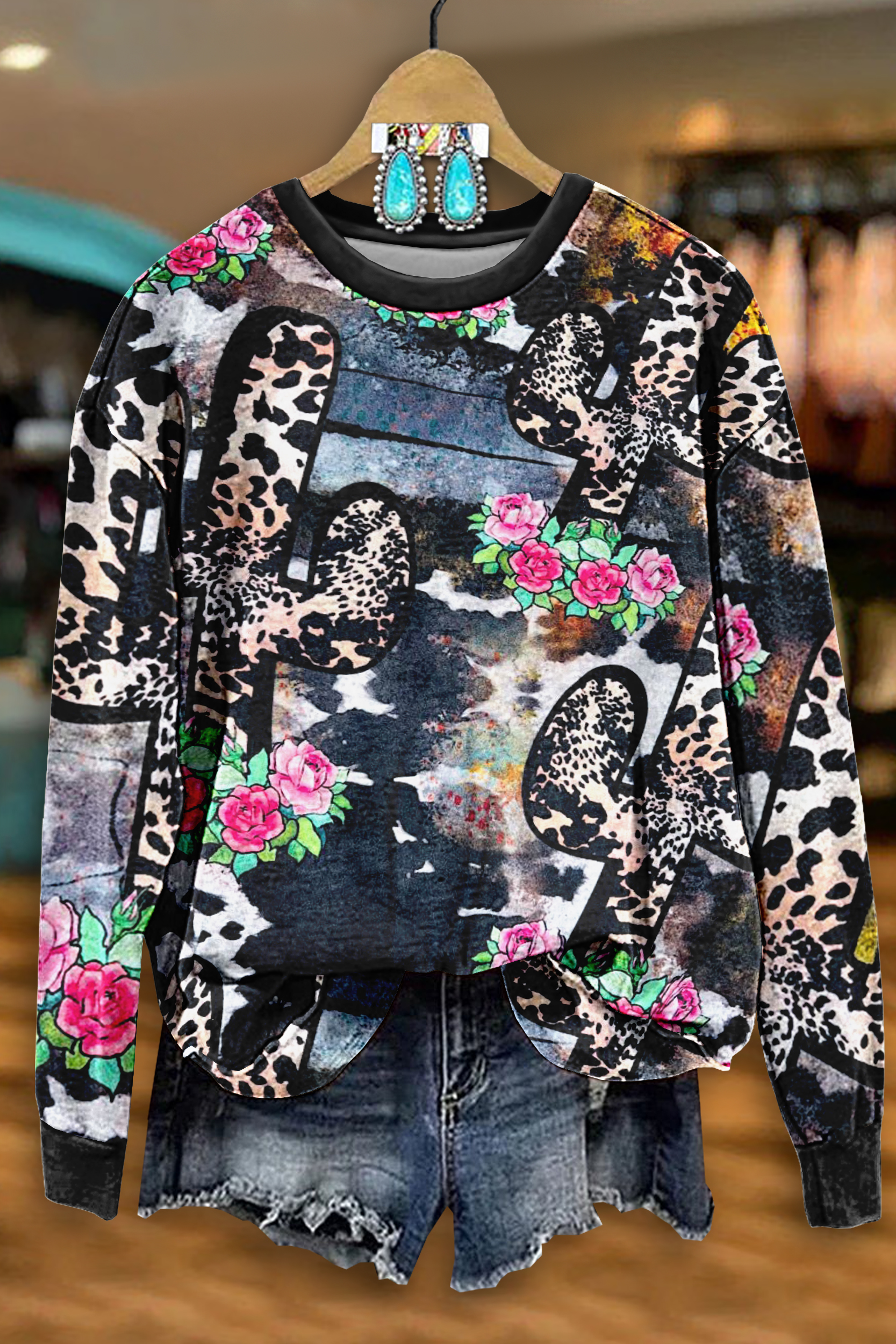 Leopard Cactus Print Sweatshirt