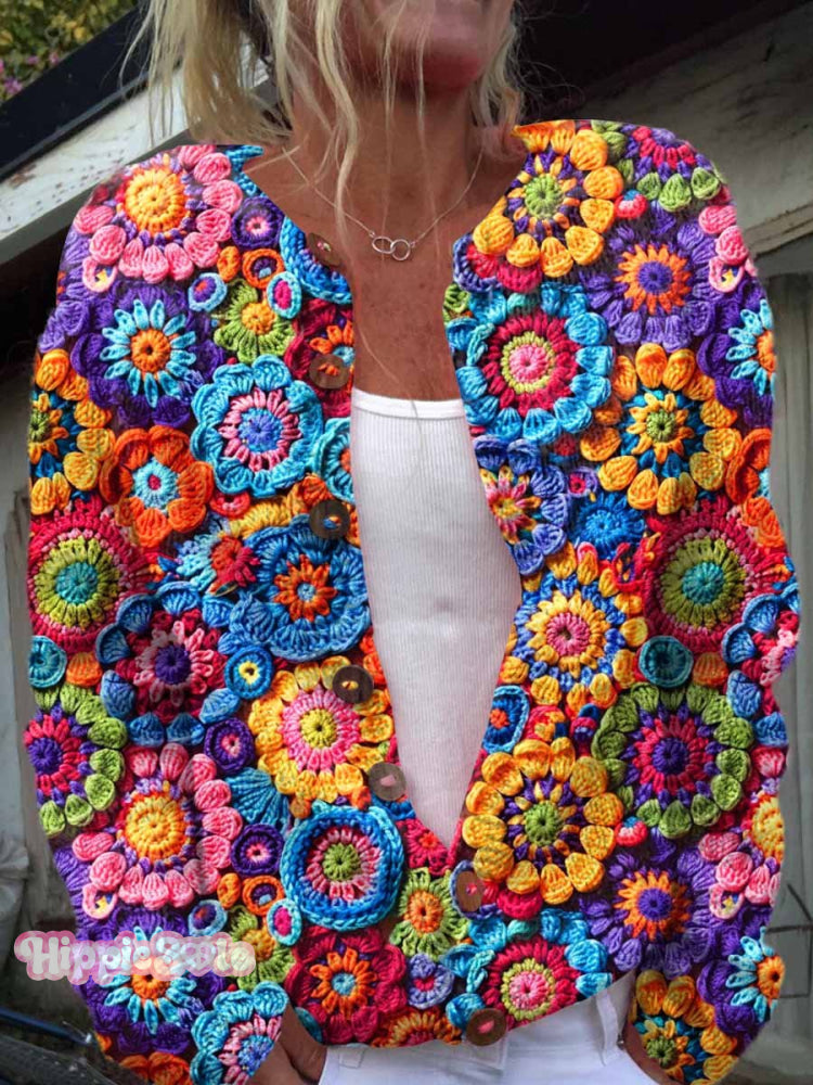 Colorful Funny Print Buttoned Cardigan Sweater