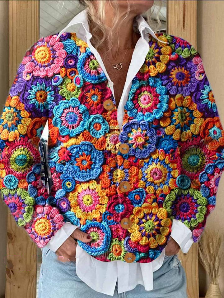 Women's Vintage Lovely Floral Art Print Casual Long Sleeve Comfortable Cotton Shirt
