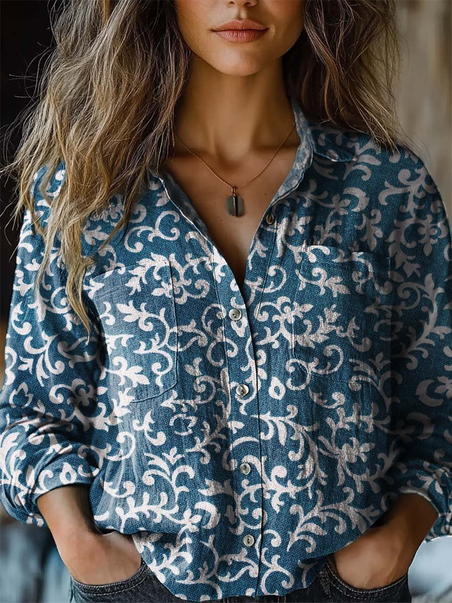 Women's Retro Pattern Art Print Casual Long Sleeve Comfortable Cotton Shirt