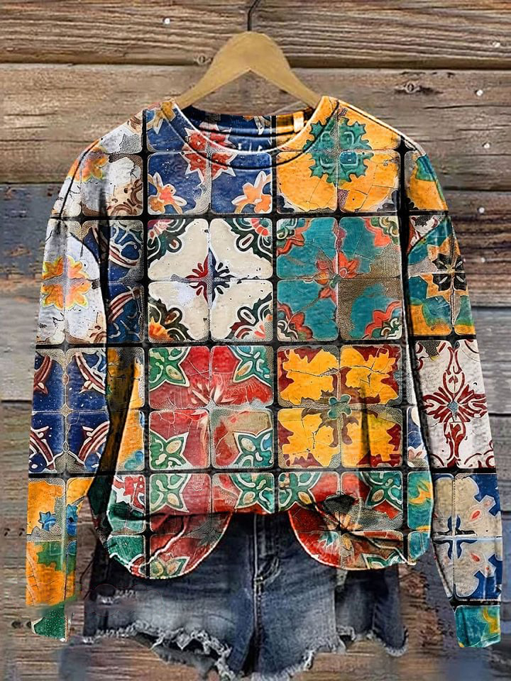 Colorful Turkish Tile Pattern Print Casual Sweatshirt