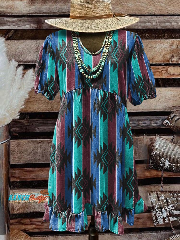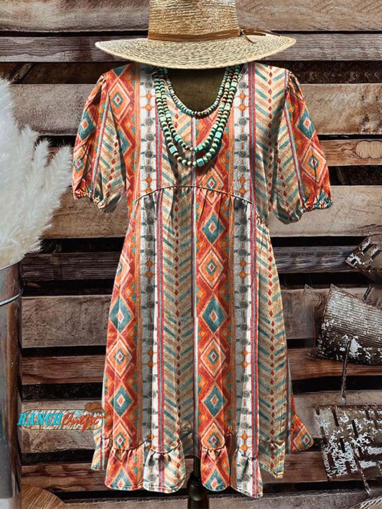 Women's Vintage Aztec Art Print Pocket Cotton Dress