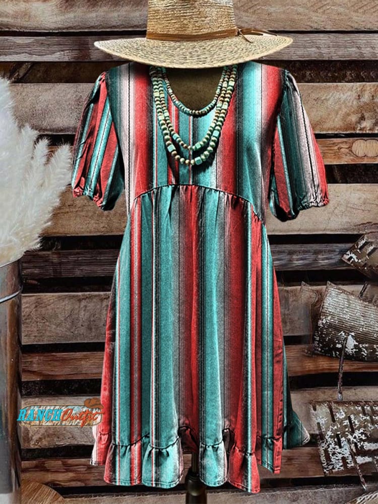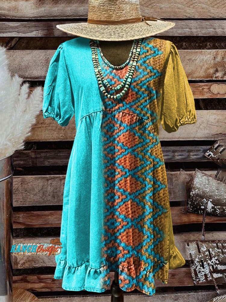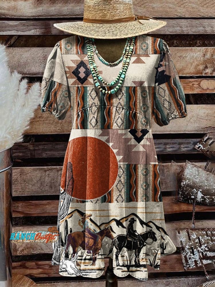 Women's Western Art Print Tassel Cotton Dress