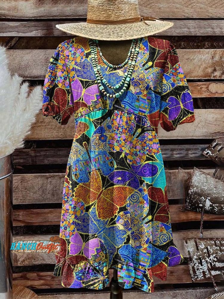 Women's Butterfly Print Pocket Cotton Dress