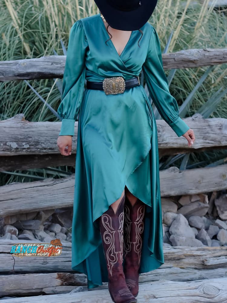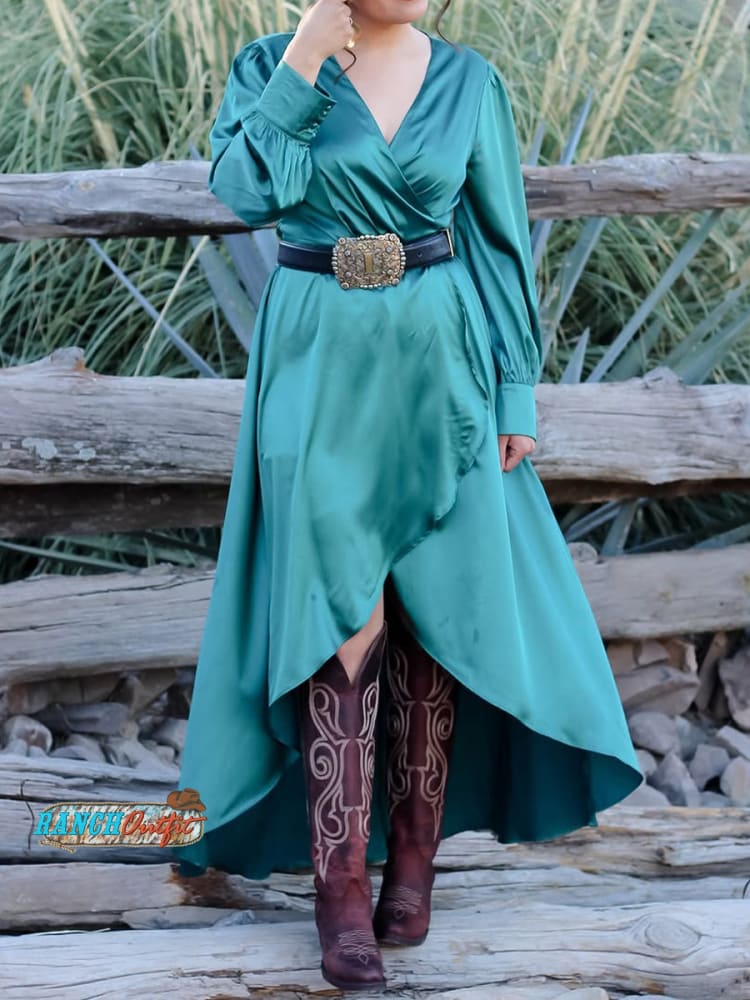 Women's Glossy Satin Crossover V-Neck Dress