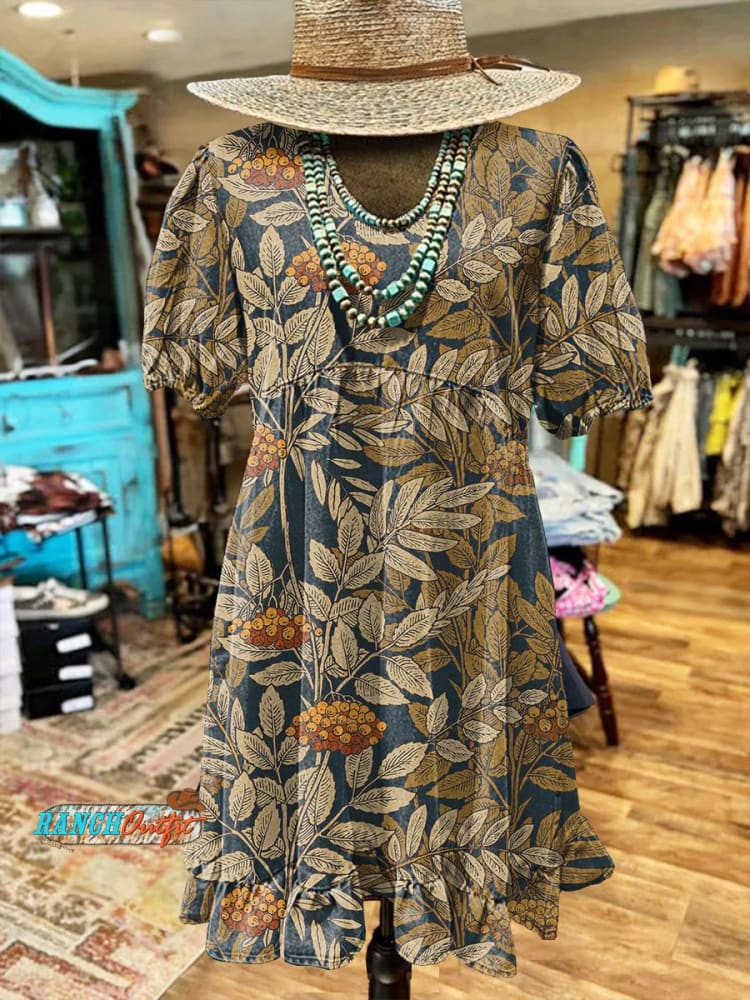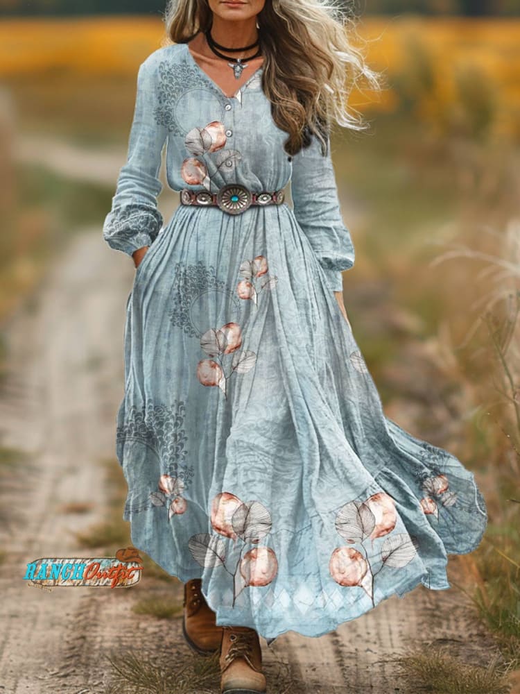 Women's Vintage Plant Print Pocket Cotton Dress