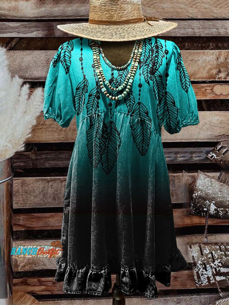Women's Vintage Feather Art Print Pocket Cotton Dress