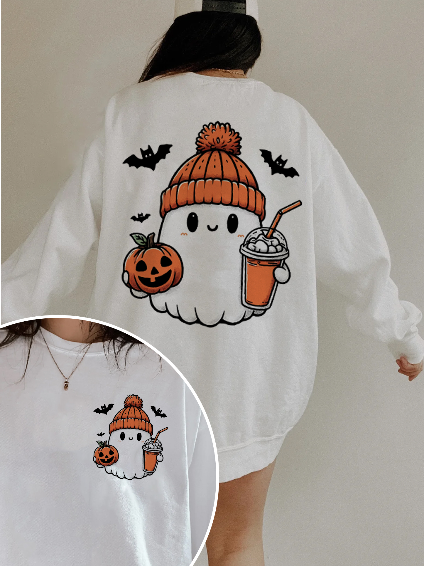 Cute Ghost Coffee Pumpkin Spooky Season Sweatshirt