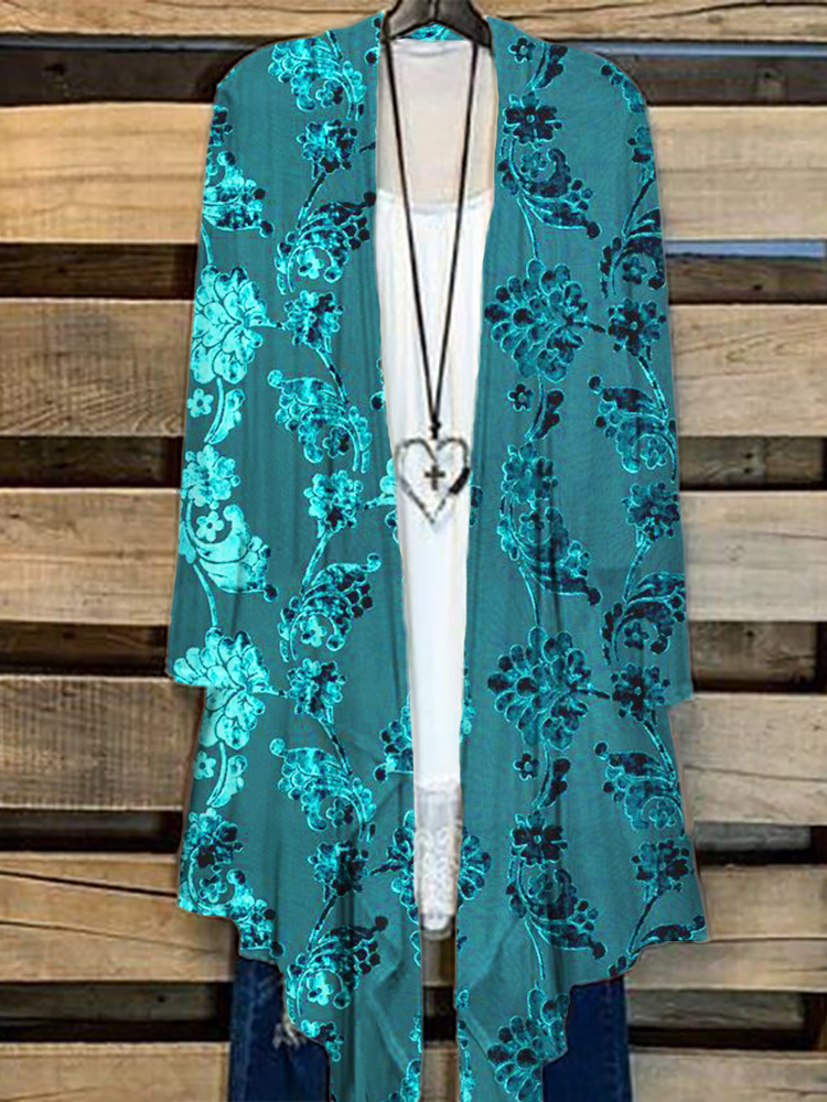 Turquoise Floral Velvet Art Flowy Cardigan
