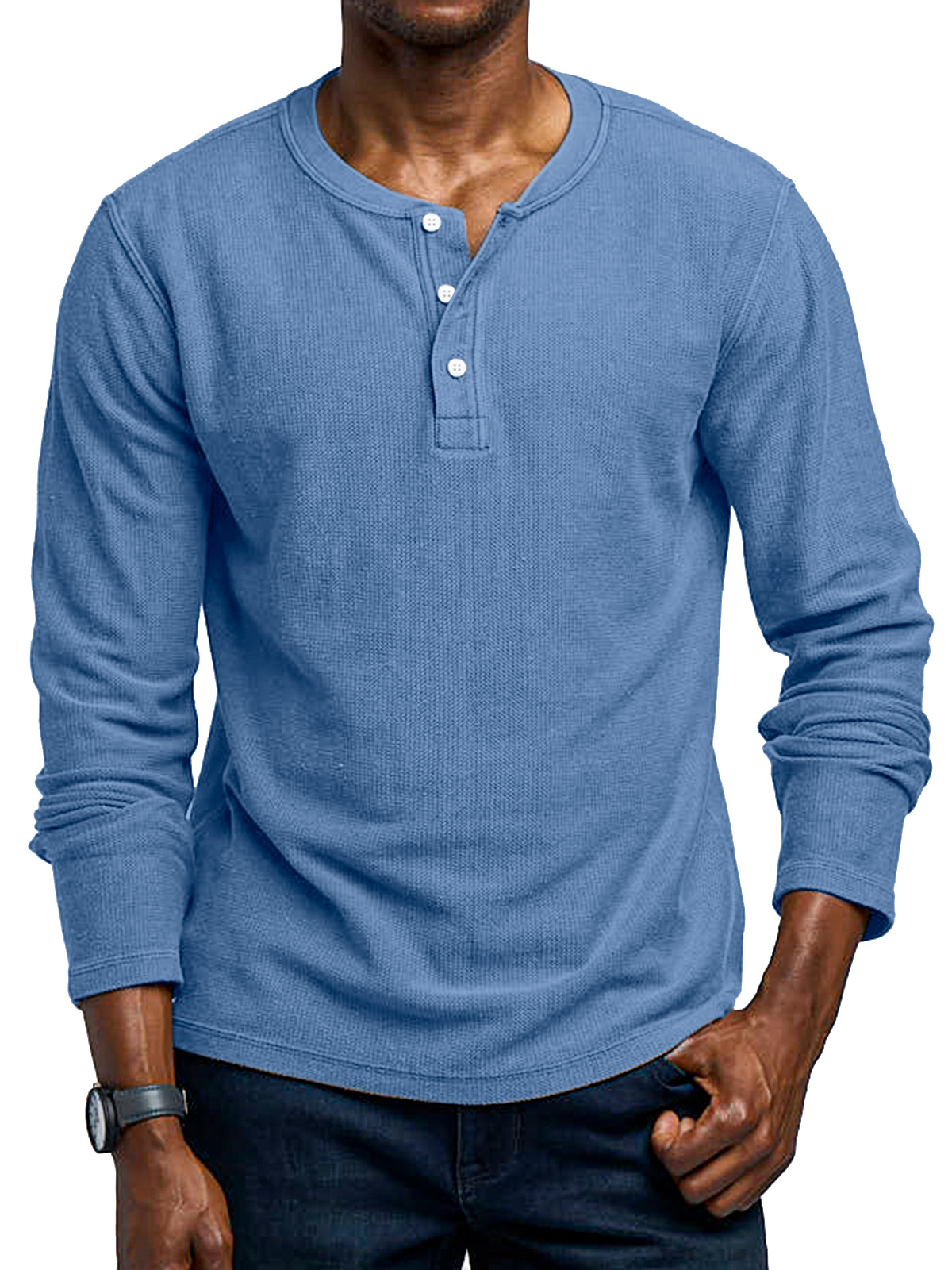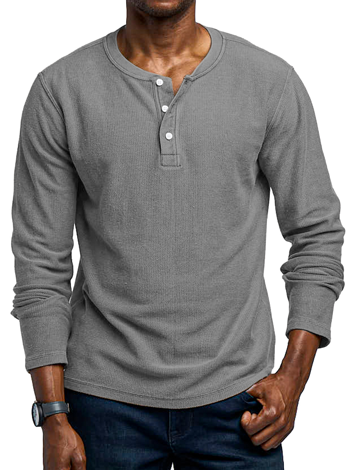 Men's Simple Solid Color Vintage Waffle Long Sleeve Henley Shirt