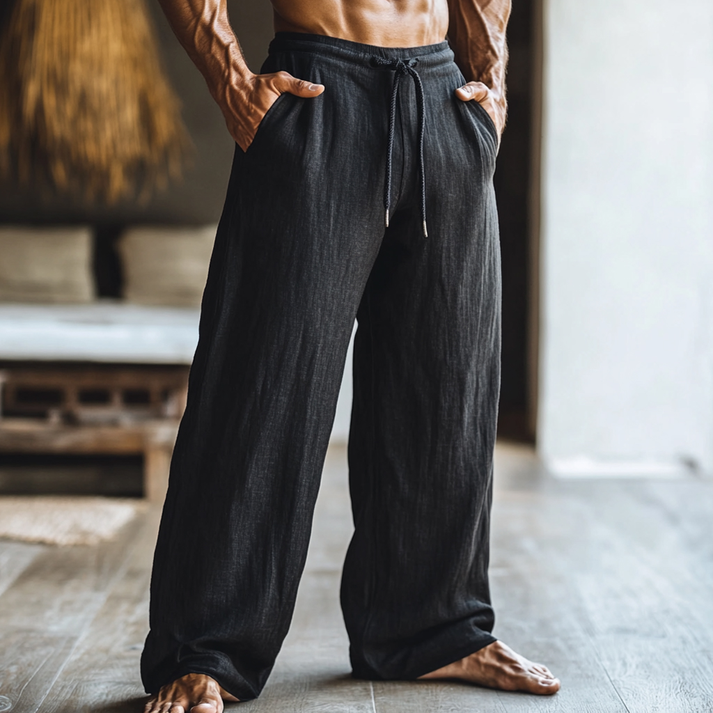 Men's Linen Straight Wide Leg Casual Pants