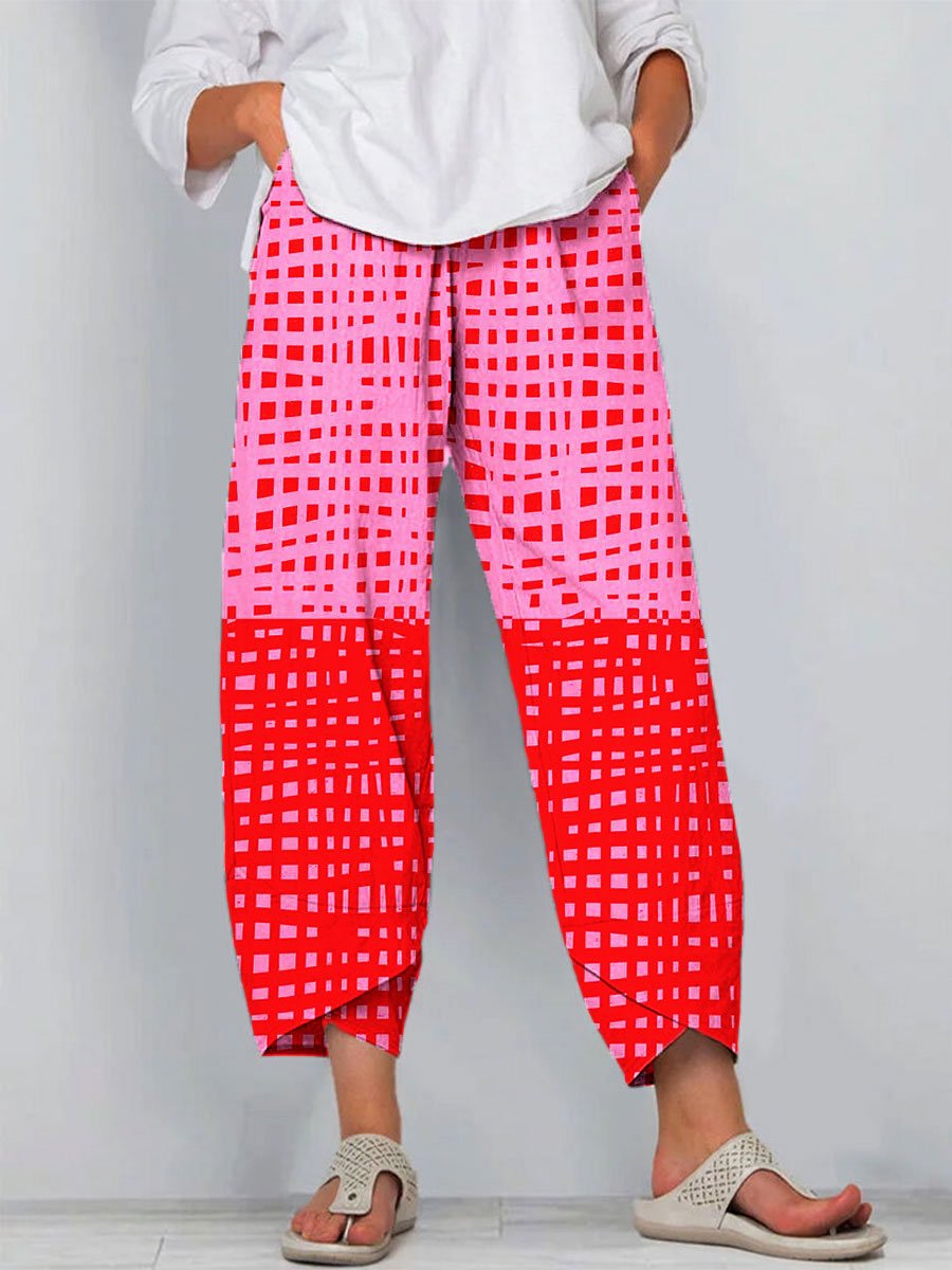 Women's Abstract Vibrant Bold Fun Colorful Geometric Stripes Art Print Cotton And Linen Casual Pants
