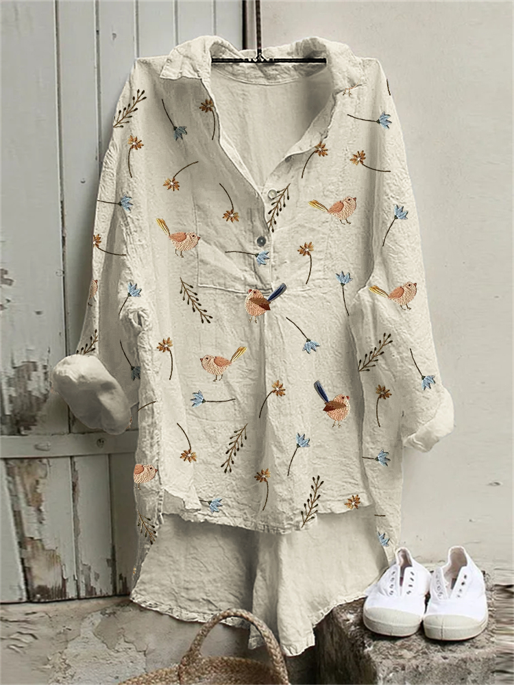 Women's Vintage Art Print Casual Long Sleeve Comfortable Cotton Shirt