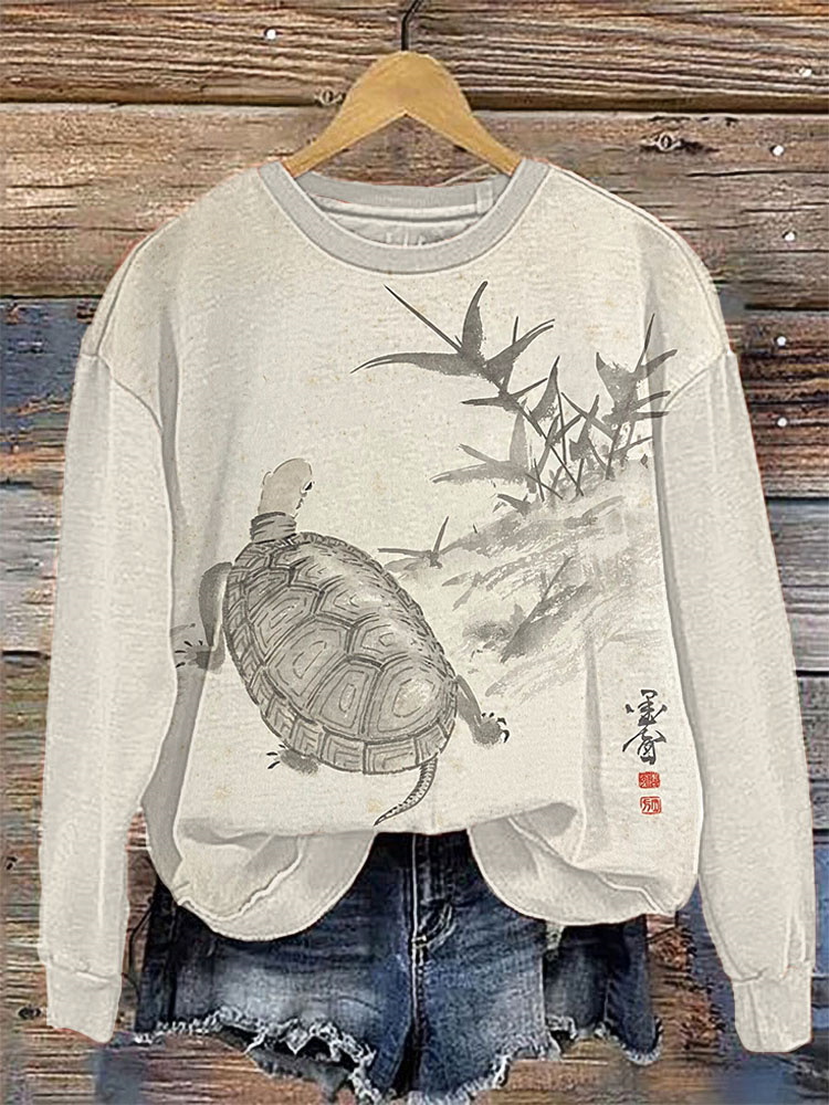 Japanese Art Sea Turtle Print Sweatshirt