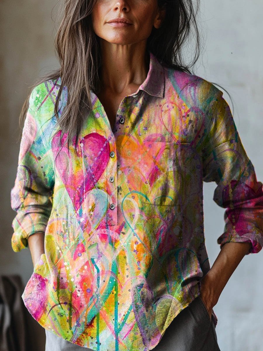 Women's Love Painting Art Print Casual Cotton And Linen Shirt