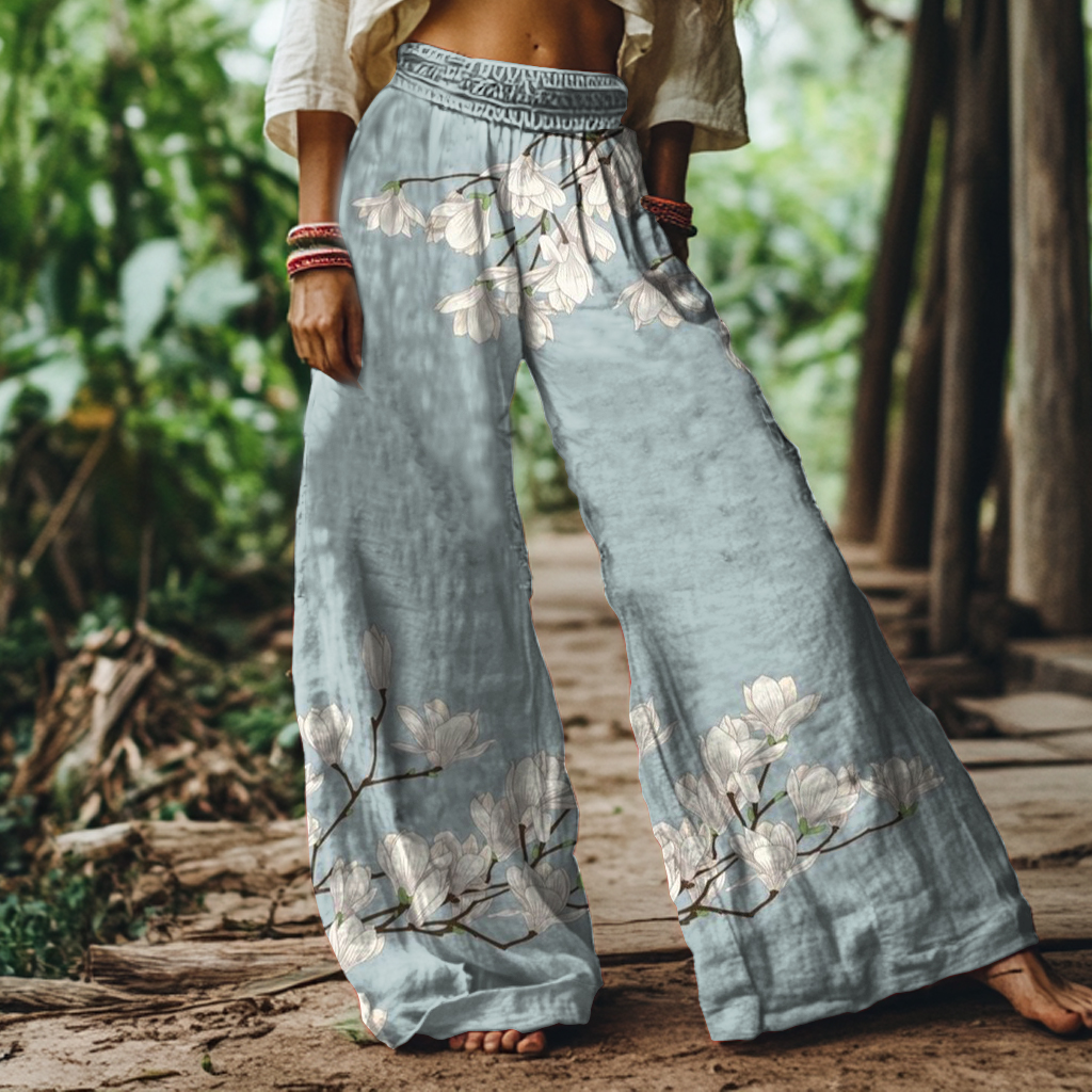 Vintage Floral Art Print Loose Wide-leg Pants