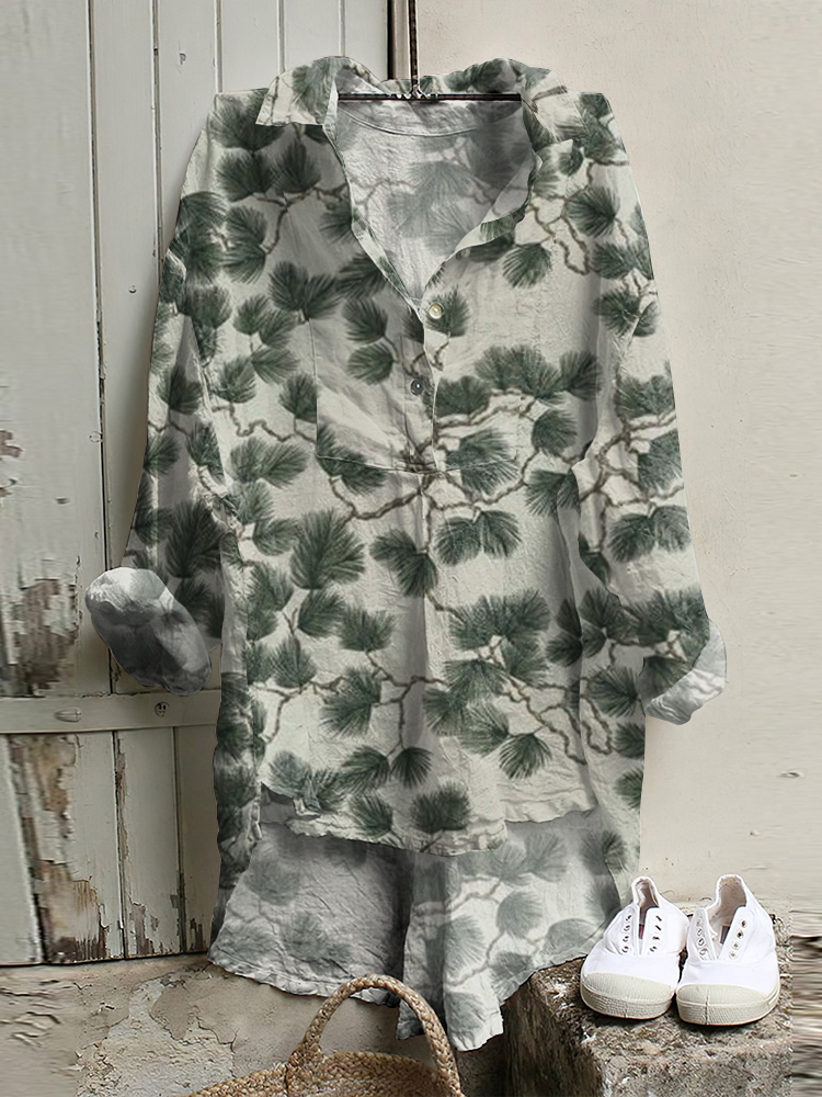 Watercolor Bough Summer Pattern Printed Women's Casual Cotton And Linen Shirt