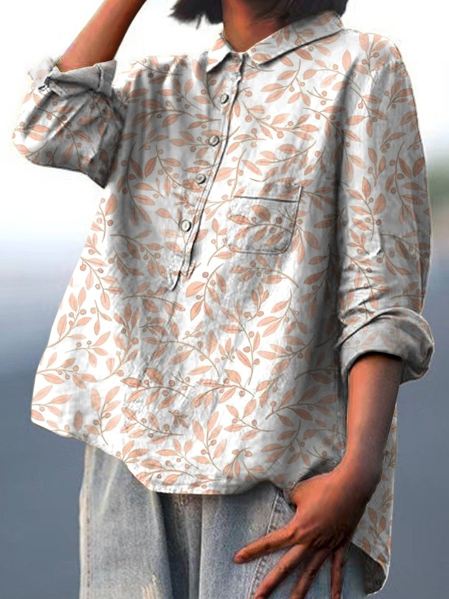 Women's Vintage Flower Art Print Casual Long Sleeve Comfortable Cotton Shirt