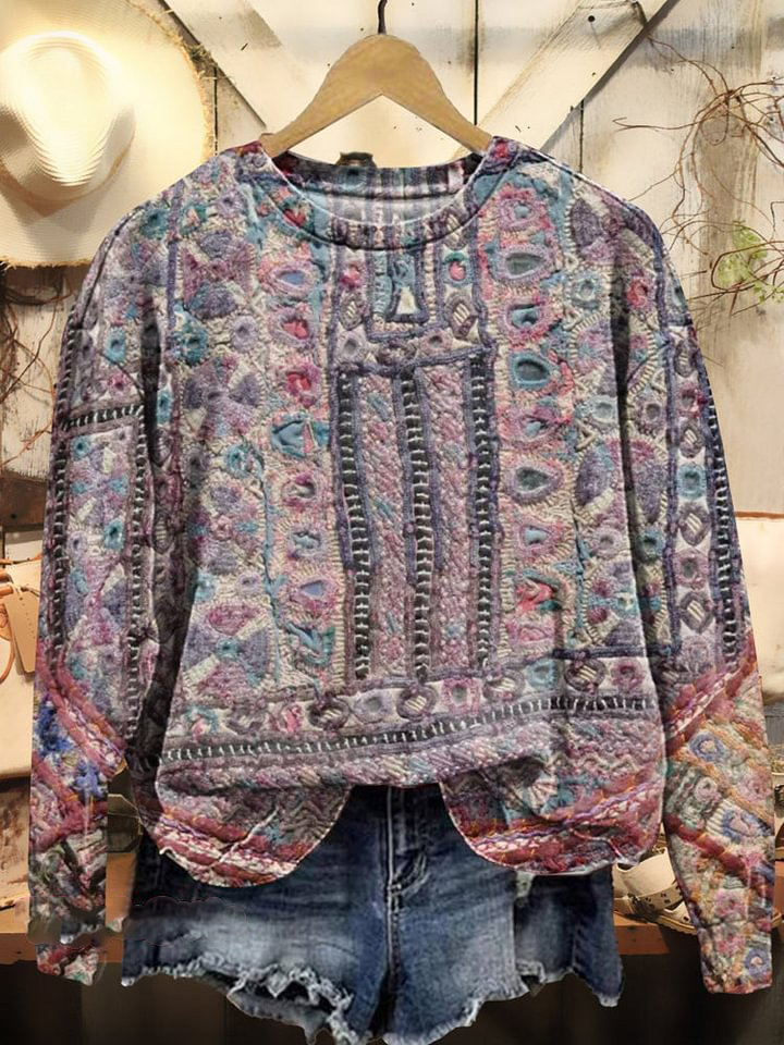 Women's Vintage Lovely Ethnic Floral Art Print Casual Sweatshirt