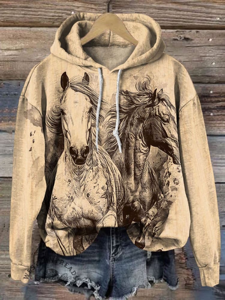 Vintage War Horse Art Print Casual Sweatshirt